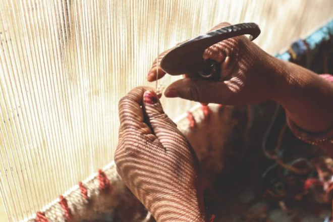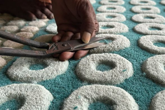 Hand-knotting is one of the earliest and most time-consuming carpet-weaving techniques. In this method, skilled artisans carefully tie each knot by hand onto the warp (vertical threads) of the loom. The knot count per square inch indicates the carpet’s quality, thickness, and long-lasting strength. Well-known examples include Persian and Turkish carpets.